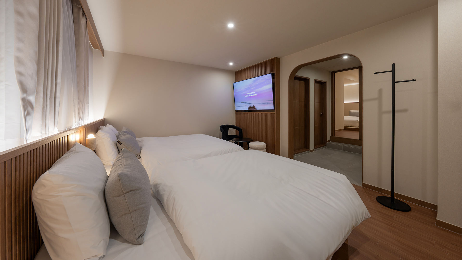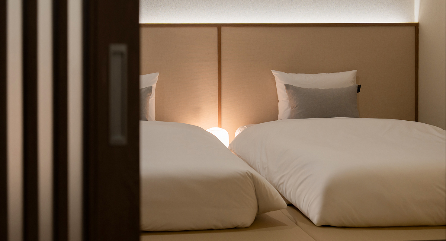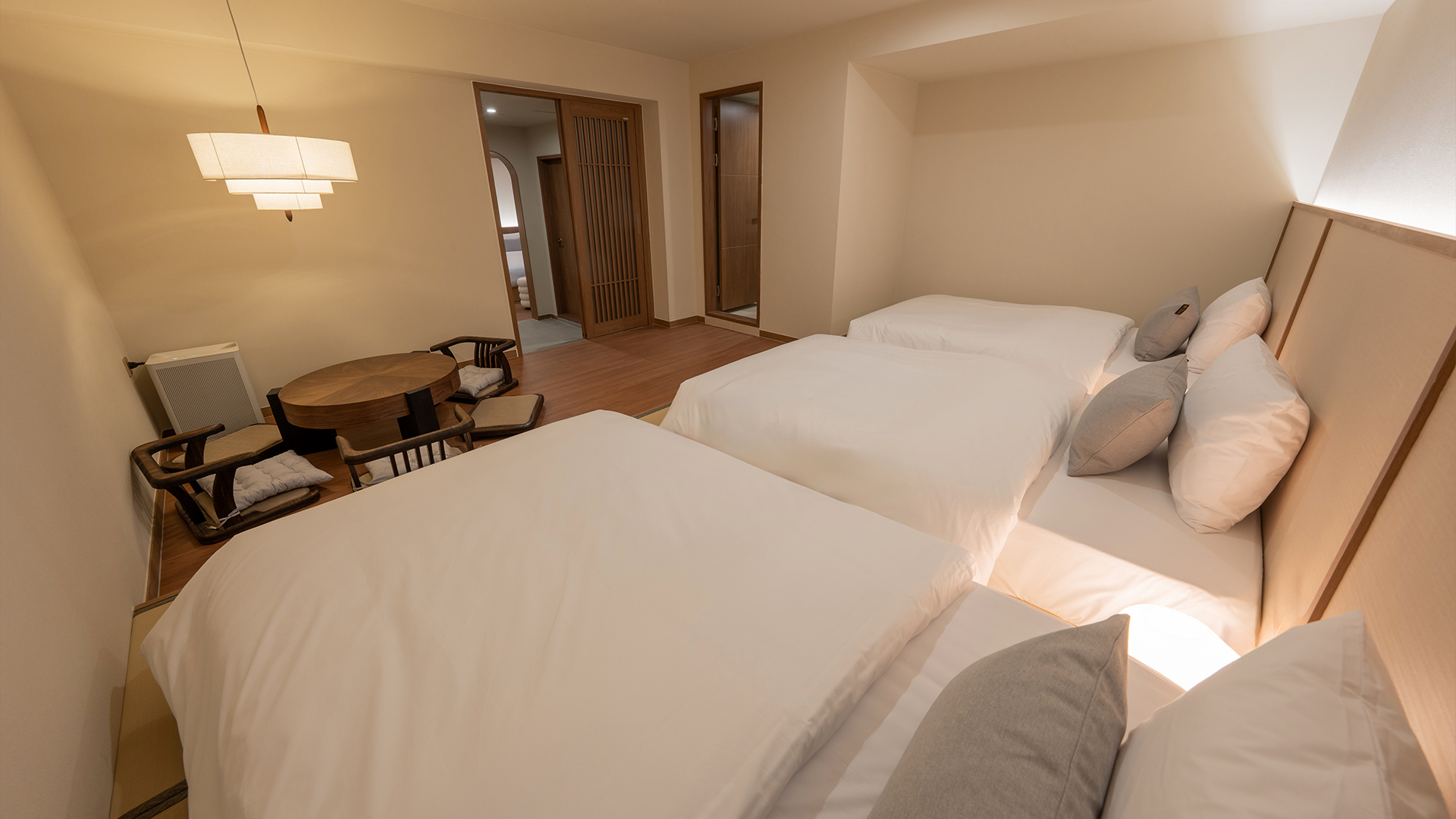 A cosy and comfortable room with two rooms and various bed configurations, and a family suite with a cozy and comfortable atmosphere